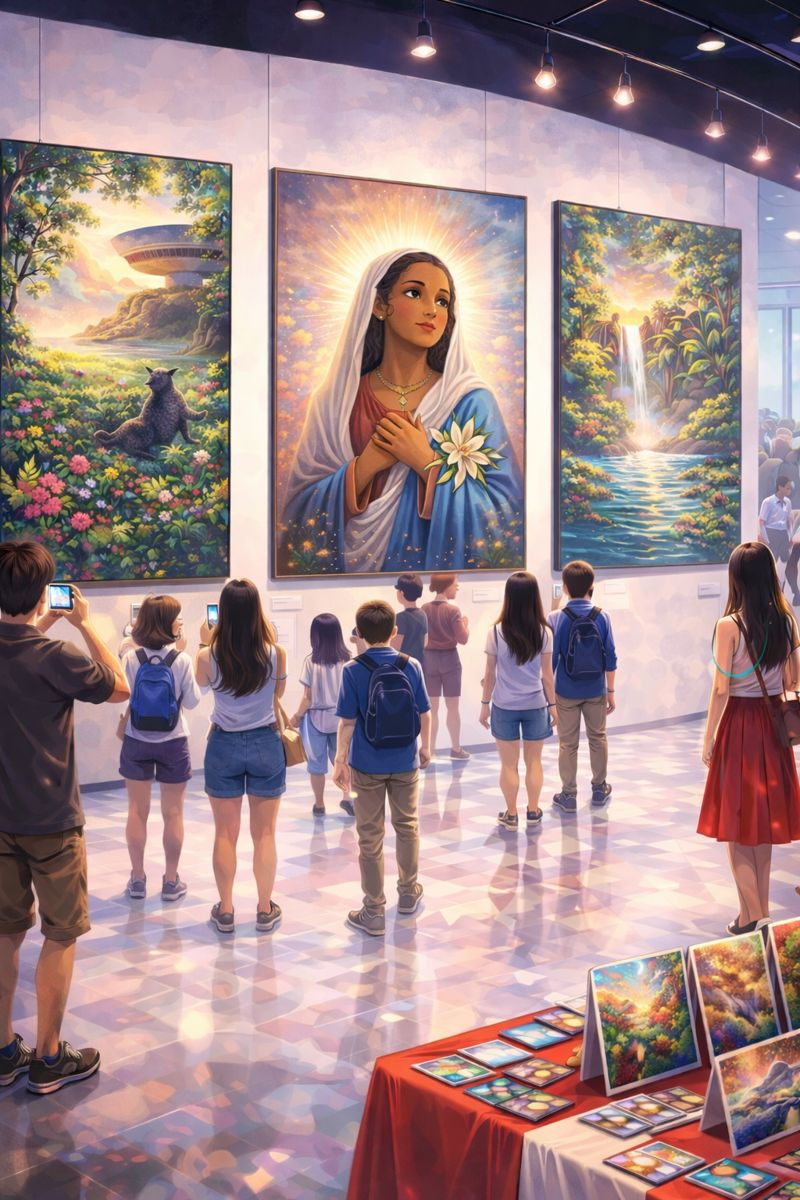 Es una hermosa tarde en Niterói, una ciudad cerca de Río de Janeiro, Brasil. Muchas personas visitan el Museo de Arte Contemporáneo de Niterói y disfrutan de su majestuosa pasarela roja. Todos están allí para ver la nueva exhibición de arte de la famosa Magdalena.